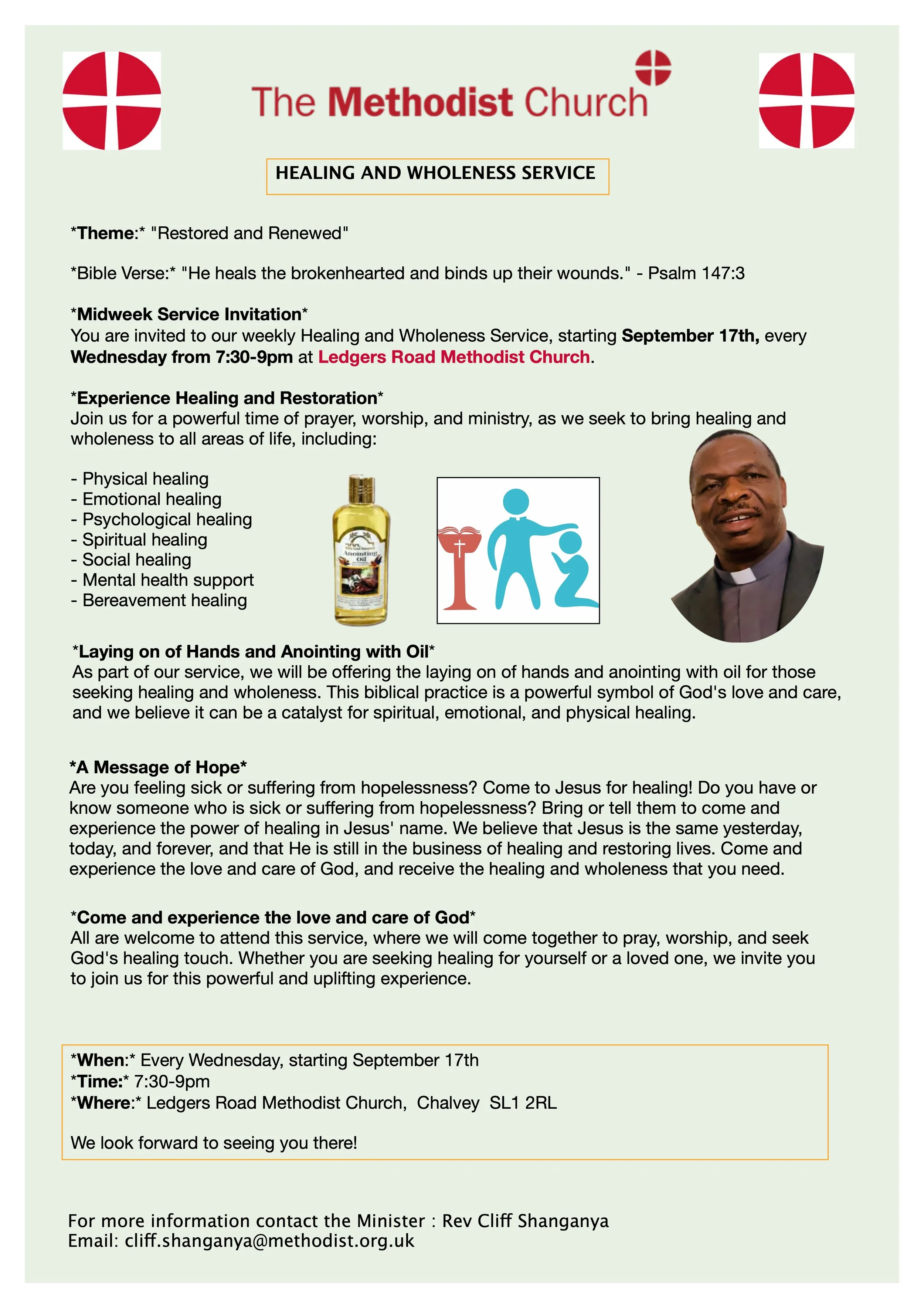 Healing and Wholeness service at Ledgers Road Methodist Church